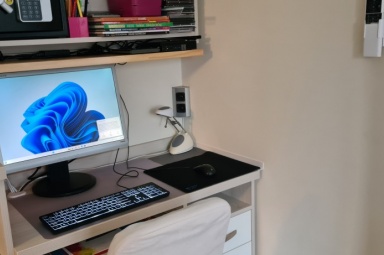 - biurko z drobnymi materiałami biurowymi